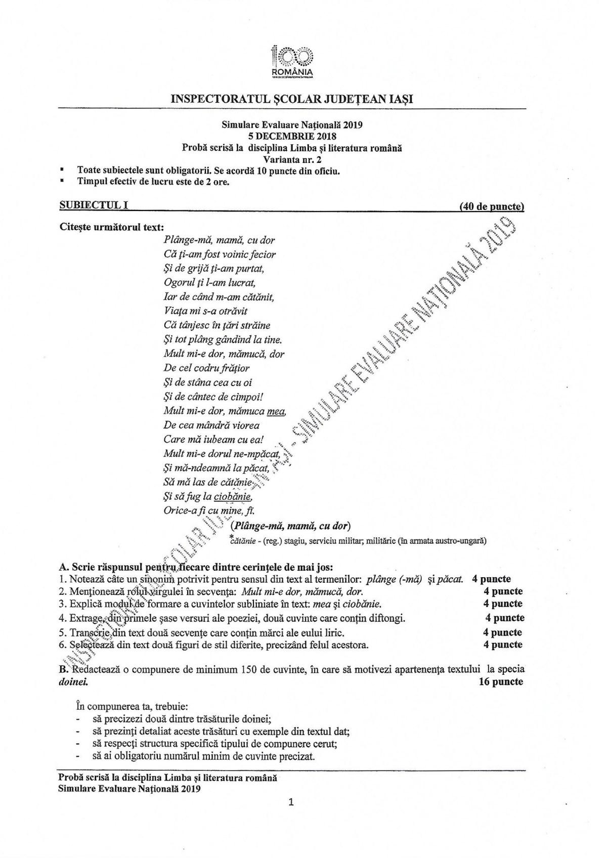 Model Simulare Clasa A 7 A Romana